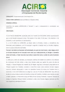A equipe jurídica da ACIR (Associação Comercial e Industrial de Rondonópolis) preparou um parecer para esclarecer as questões levantadas pelos nossos associados sobre se a Sexta-feira Santa é considerada ou não um feriado. Abaixo está a explicação fornecida pelos advogados da entidade: